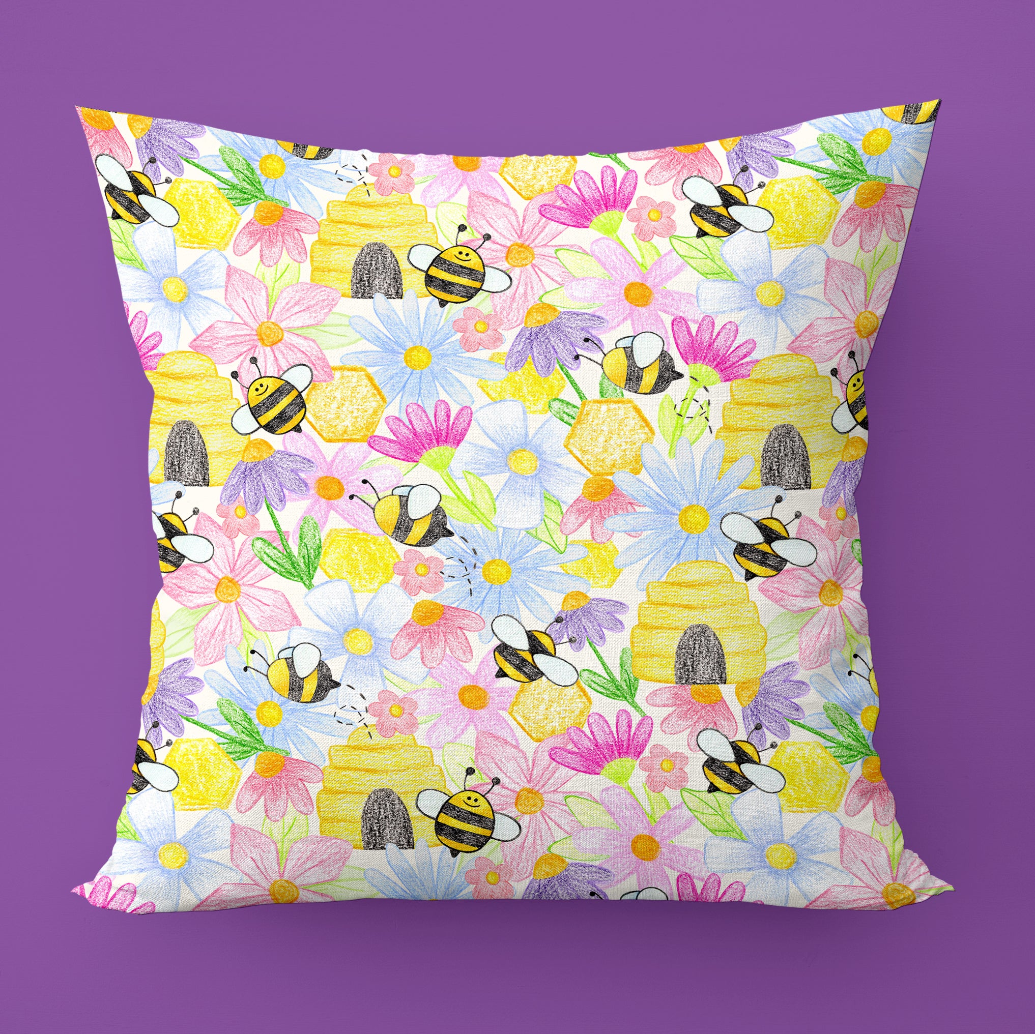 Bzz Bzz Bees and Pretty Flowers Throw Pillow