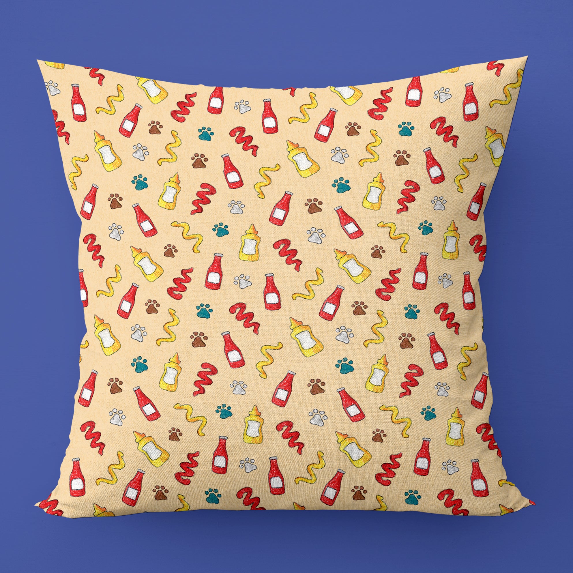 Ketchup and Mustard Paws Throw Pillow